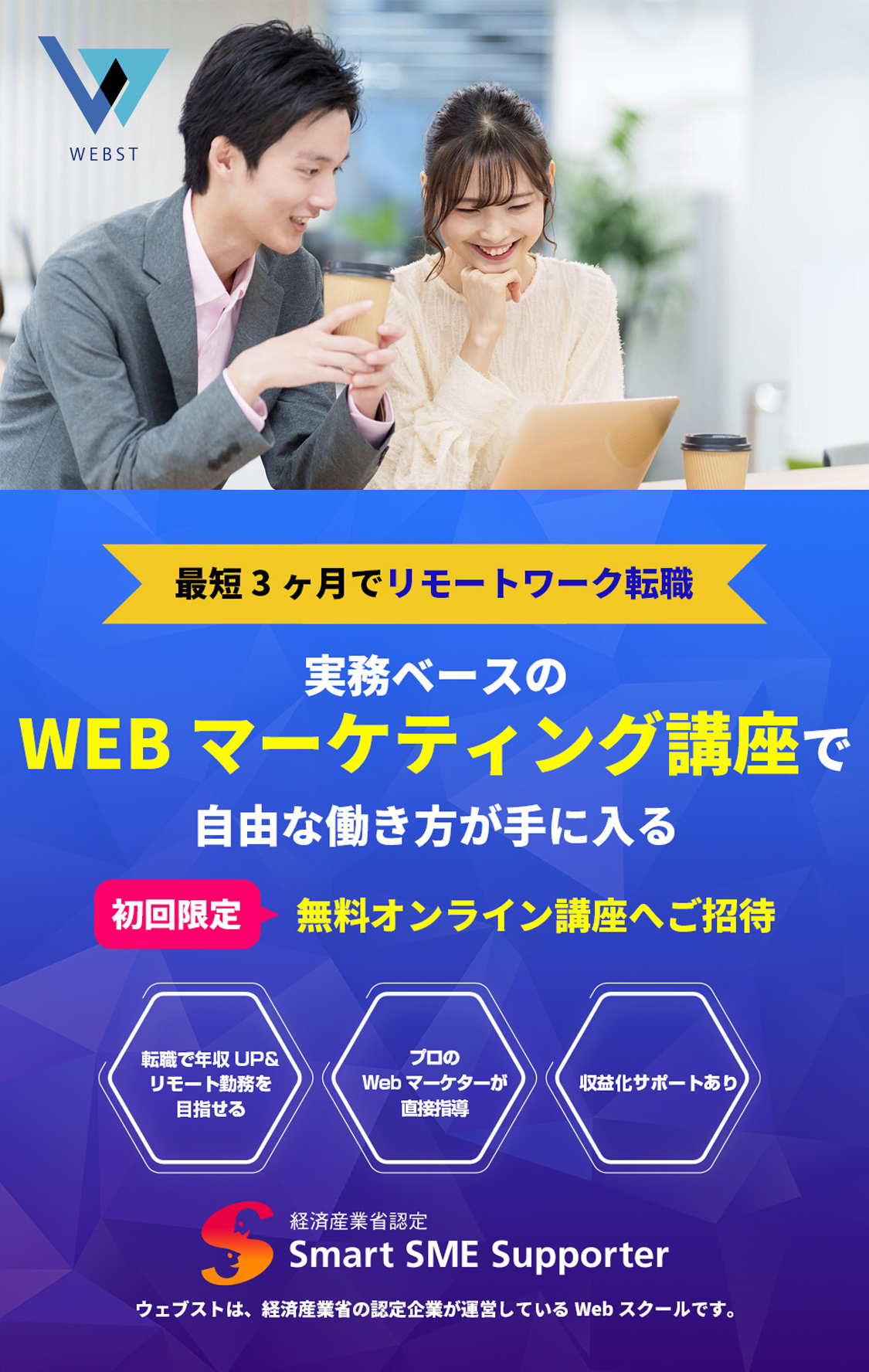 「自分でも学べるかな・・・」といった心配は不要です。ウェブストでは、現場で日々活躍するプロのマーケターが講師として”複数人”在籍しています。