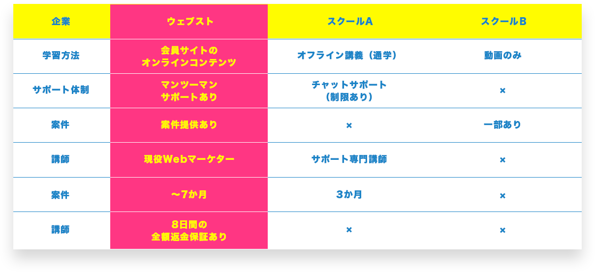 多くのWebマーケティングスクールで実践ができないという課題を解決する為に、ウェブストでは本物の広告案件で実務経験を積めます。