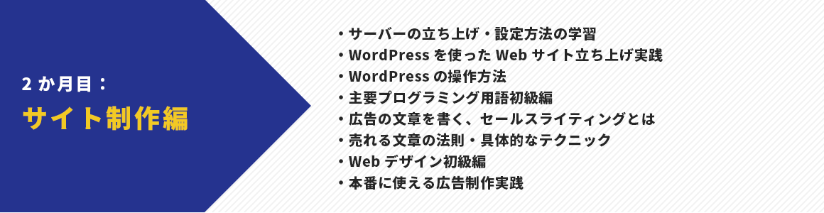「学ぶだけでは意味がない」という考えのもと、ウェブストのカリキュラムは実践重視になっています。まずは基礎を学びつつ、本当にWebサイト制作を行い、本当にWeb広告を運用します。