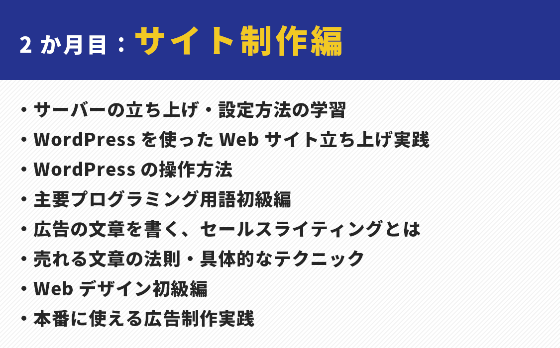 大丈夫です。1か月目の基礎学習編では、Webマーケティングに関する用語から解説しています。
